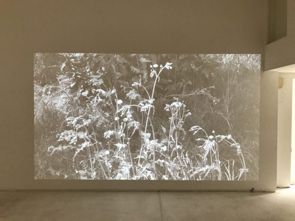 それぞれ投影サイズや投影している高さが違います。天井が高く白い展示空間が余白のように見えるので、モノクロで静かな映像に非常にマッチしています。