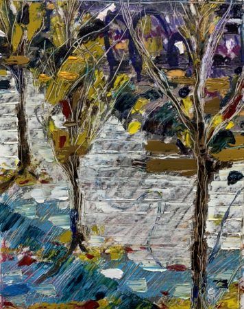 2019年11月、帝国ホテル内のMEDEL GALLERY SHUで開催された個展で発表された作品です。とあるキュレーション企画の内のひとつだったため、通常の展示予定よりも早く告知されていた記憶があります。当時まだコレクションを始めて間もなかった私は、その告知にあった作品を見て衝撃を受けました。画像からでも伝わる圧。これは必ず見に行かねばということで優先的に予定を組んで伺い、サイズ・予算が許す中からこの「Night Walker」を購入しました。彼の作品の中では異端の部類に入るかもしれませんが、孤独・寂しさを強く感じさせる作品です。私にとっては、某ミュージシャンの名曲の歌詞を想起させる作品でもあります。