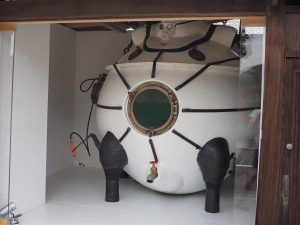 隔離されたタンク内で生理的食塩水に浸って瞑想する体験型の彫刻作品「タンキング・マシーン」です。「タンキング・マシーン」は、金沢21世紀美術館にコレクションされていますが、今回展示されているものは再制作された「タンキング・マシーン-リバース」です。新型コロナウイルスによるパンデミックで社会全体が「隔離」されているなか、創造性が育まれ「再生」することを願って再制作されたようです。