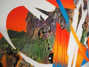 色の使い方や構図のうまさが抜群で、流石の一言。白い部分は直線に近いものや綺麗な曲線をよく使われている印象ですが、1枚目の作品のようなウネウネとした線の作品は初めてみました。面白いですね。