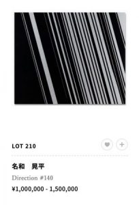 名和さんの平面作品ってまだまだ落ち着いた価格で落札されていますが「Direction」のシリーズは上がってきた印象です。それでも今後この価格では買えなくなるでしょうね。黒とシルバーの組み合わせも最近ではあまりみないので貴重です。