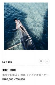 東松さんの作品は、今年の4月のSBIではEst上限の3倍以上、去年のSBIではEst上限4倍以上の価格で落札されるなど、非常に安定した人気です。今回もいい作品ですがゼラチンシルバープリントではなくインクジェットプリントなので、少し価格は落ち着くのかなと予想しています。