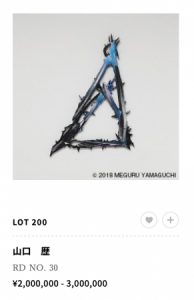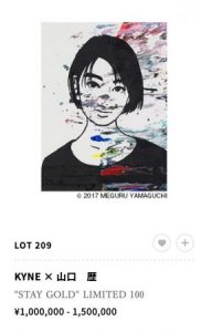 この作品はユニークエディションの作品ですが、4月のSBIでは180万円で落札されていました。山口歴とKYNEの最も勢いのあるアーティスト二人のコラボレーションなので、もっと払っても欲しい方もいるでしょうね。