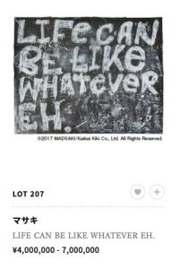 昨年のフィリップスでは、ed.130のマルチプルが約70万円程度で落札されました。昨年と比べても国内外での注目度は上がっており、東京でも展示を開催中であることから高騰してきそうですね。