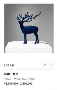 名和さんの作品集特装版のマルチプルの1番人気である青い鹿が出ましたね。以前、赤い鹿は276万円で落札されていましたが、今回は青なのでもっと人気が出そう。しかし、このvelvetのマルチプルシリーズ3年間転売禁止なのにオークション出まくりですね。