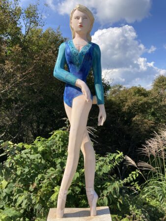 六甲枝垂れへのアプローチには飯沼英樹さんの木彫り作品が展示されています。