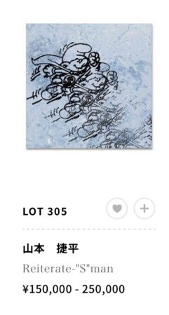 このシリーズの個展をする事で話題となっていましたし、このシリーズに関しては発表時よりSNS上で賛否両論ありましたが、昨年のBonhamsでは220万円、今年のPHILLIPSでは、約410万円と高騰しています。