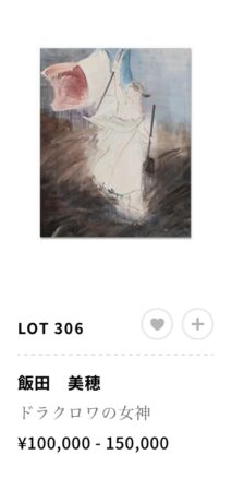 作品はかなり大きく、飯田さんらしさがしっかりと表現された素晴らしい作品ですね。Est範囲内だとプライマリーより安いと思うので、この範囲内での落札はないように感じますが、サイズが大きいのがどう影響するか…