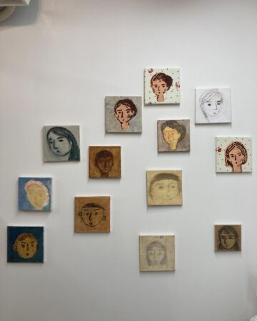 肖像画のような作品は、女性のようなモチーフが描かれた小さな作品です。新聞紙や布など様々な支持体に描かれています。