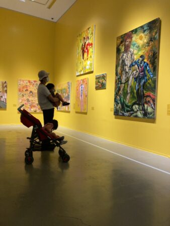 まず、使用しているパレットを展示することや、壁の色をエリアごとに変えることで、作品に存在する様々な色彩を意識することができました。
