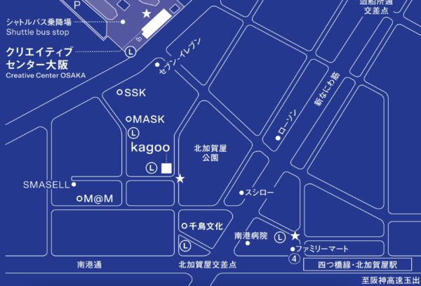 中之島エリアと北加賀屋エリアは無料のシャトルバスが運行されており、中之島エリアから北加賀屋エリアの移動や、範囲の広い北加賀屋エリア内の移動はシャトルバス利用により、とても巡りやすいシステムとなっています。北加賀屋エリアではLUUPも配置されるようなので、電動スクーターを利用して回るのもありですね。