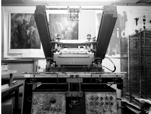 林聡さんは大阪教育大学教育学部美術学科在学中に、1988年に国立国際美術館で開催された「現代アメリカ版画の断面・作家と工房」展を鑑賞した際に紹介されていた “版画工房ジェミナイG.E.L”の活動に感銘を受け、シルクスクリーンによる既成概念にとらわれない自由な版画工房をつくりたいと、大学を卒業してすぐの1989年に「版画工房ノマルエディション」を立ち上げられました。
